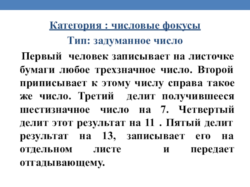 Слайд 12Категория : числовые фокусы