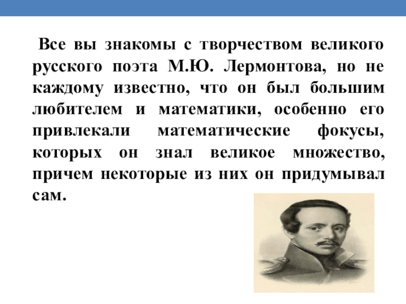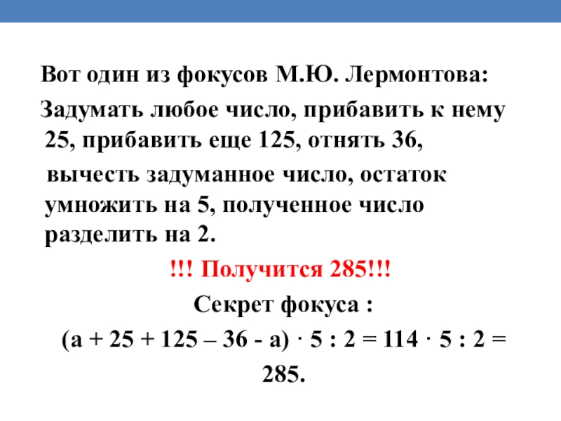 Слайд 10 Вот один из фокусов М.Ю. Лермонтова: