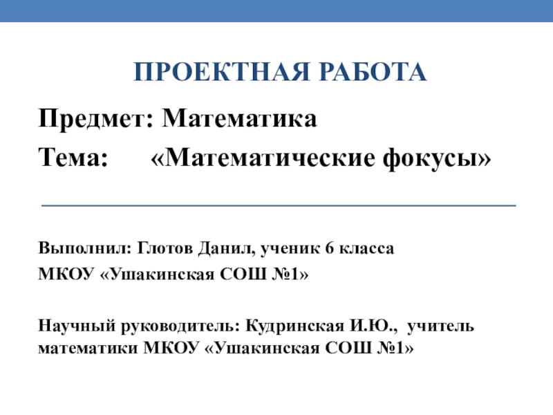 Тема: «Математические фокусы»
