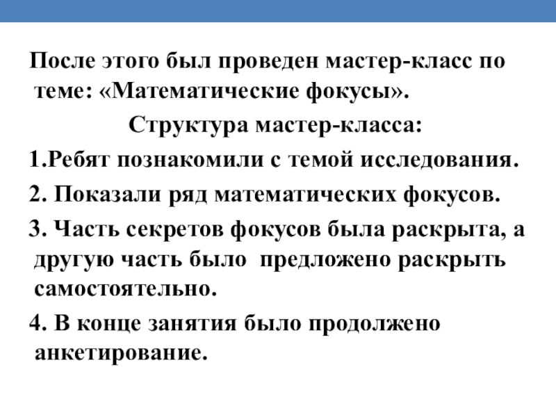 Слайд 22 После этого был проведен мастер-класс по теме: «Математические фокусы».