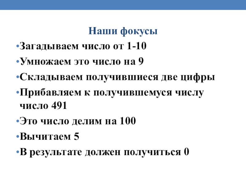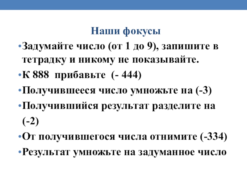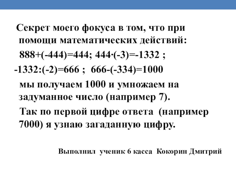 Слайд 28 Секрет моего фокуса в том, что при помощи математических действий: