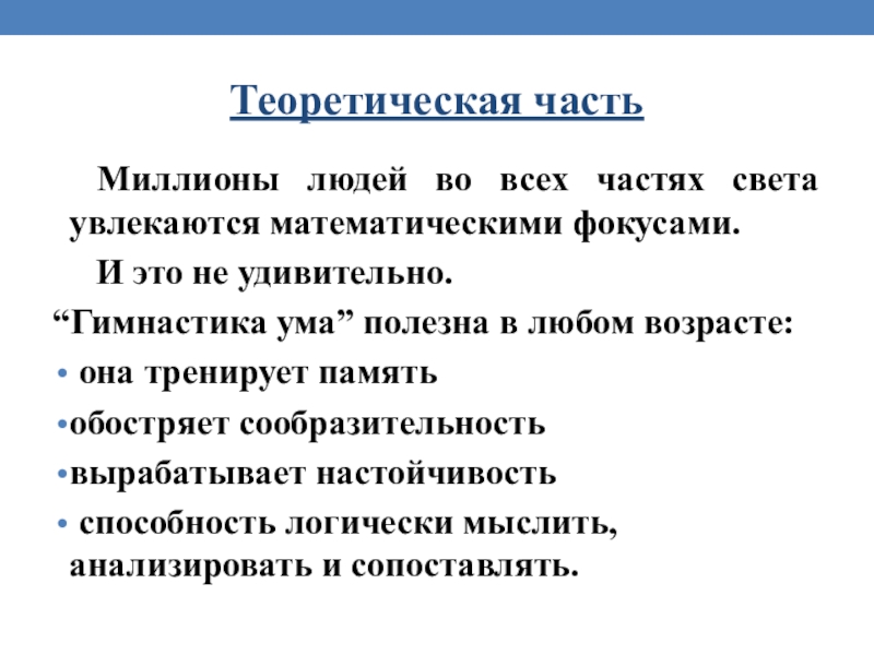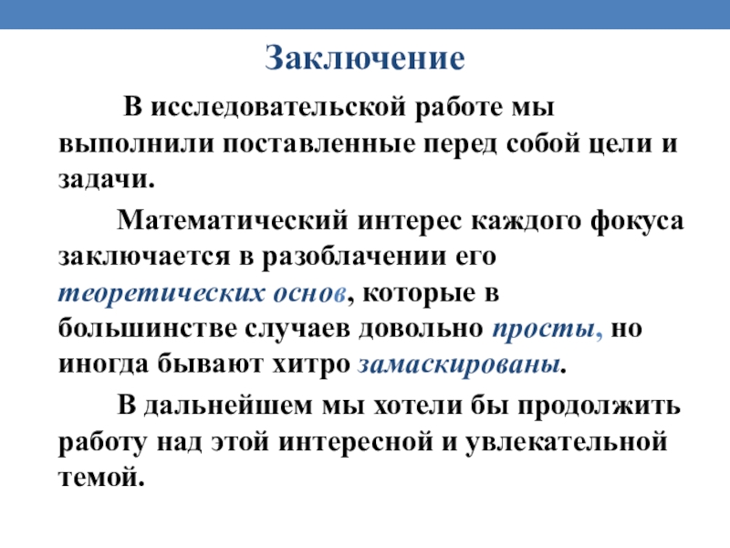 Предмет исследования: природа математические фокусов.