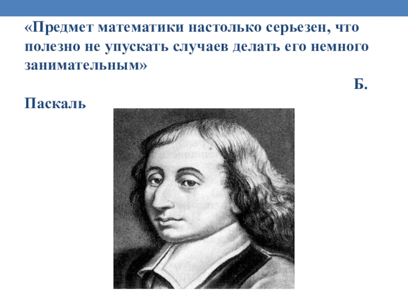 Слайд 2«Предмет математики настолько серьезен, что полезно не упускать случаев делать его