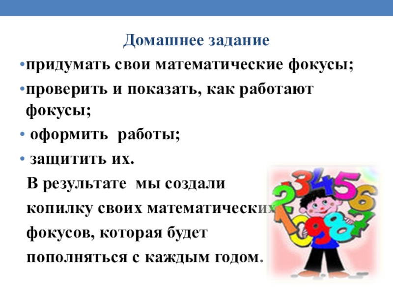 6.Создать копилку своих математических фокусов.