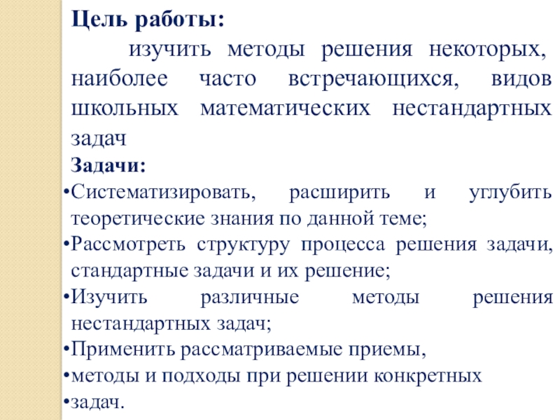 Рассмотреть структуру процесса решения задачи, стандартные задачи и их решение;