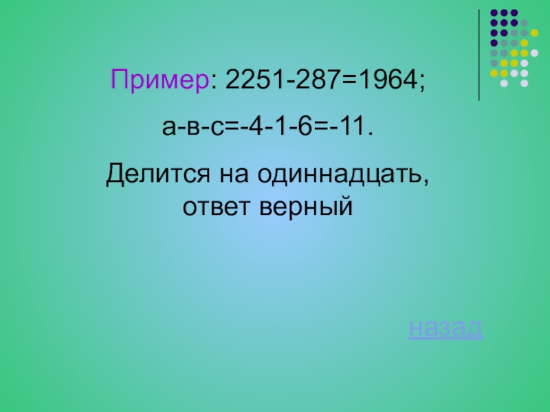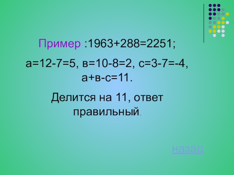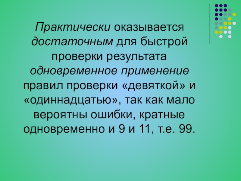Какое бы действие мы ни выполняли с заданными числами, мы то же действие выполняем с «одиннадцатыми остатками».