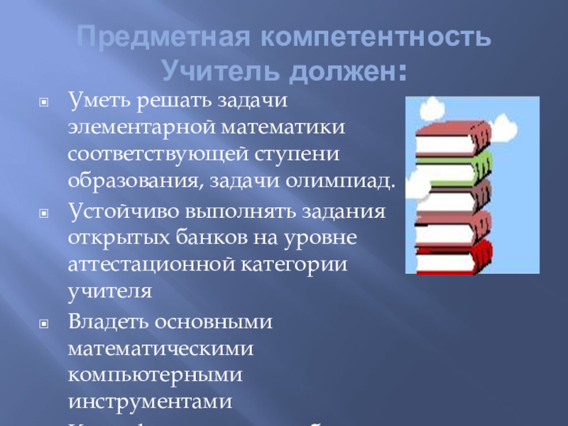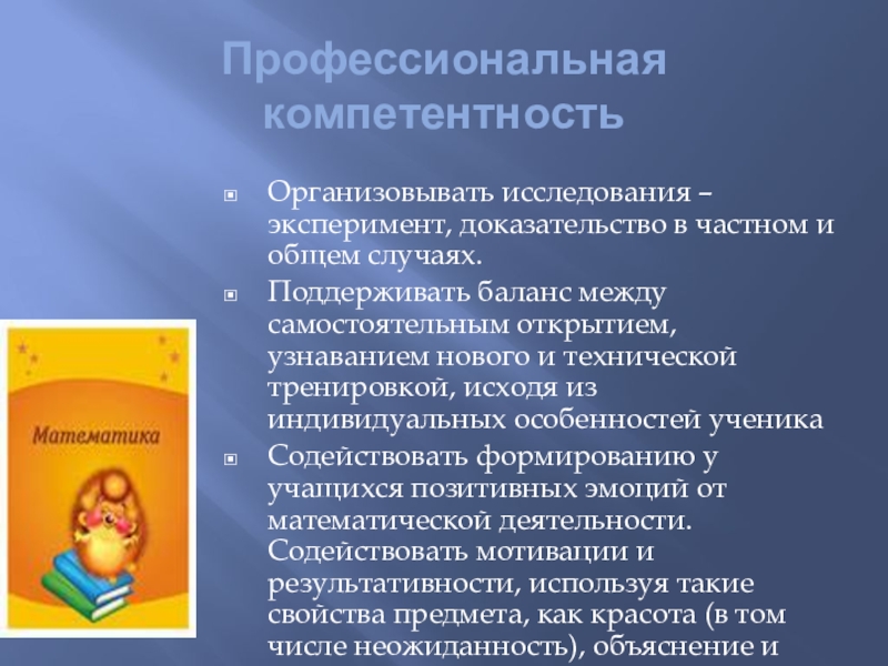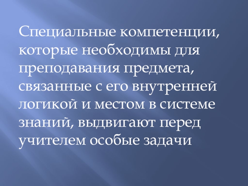 Слайд 2Специальные компетенции, которые необходимы для преподавания предмета, связанные с его внутренней