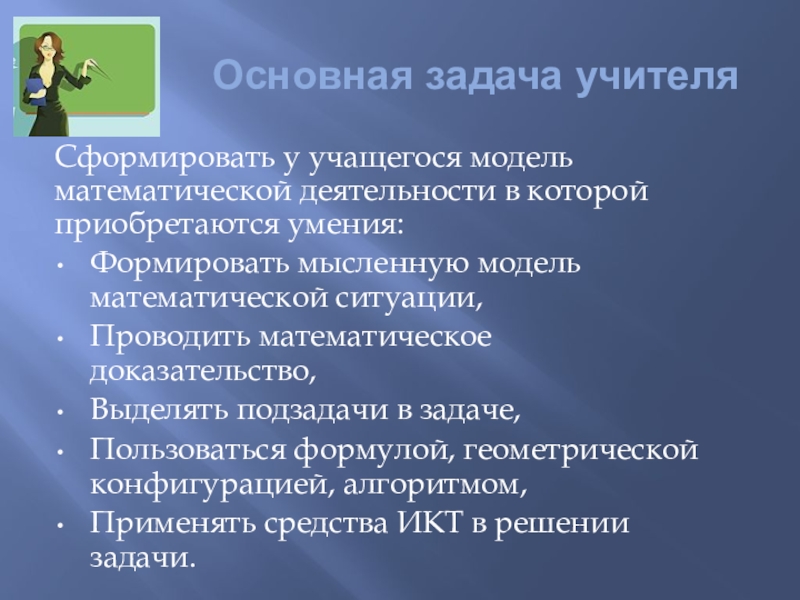 Сформировать у учащегося модель математической деятельности в которой приобретаются