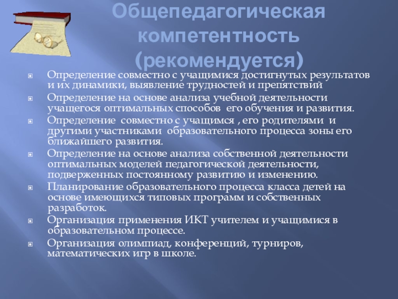 Слайд 11Общепедагогическая компетентность (рекомендуется)