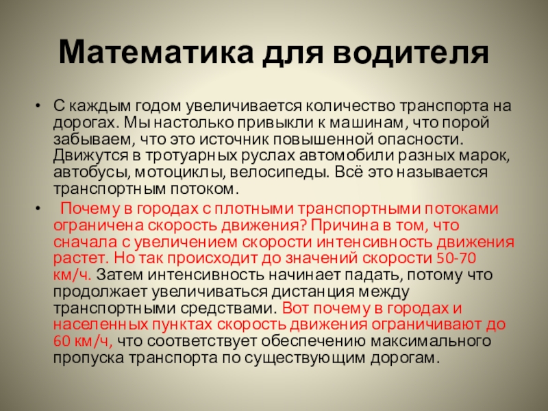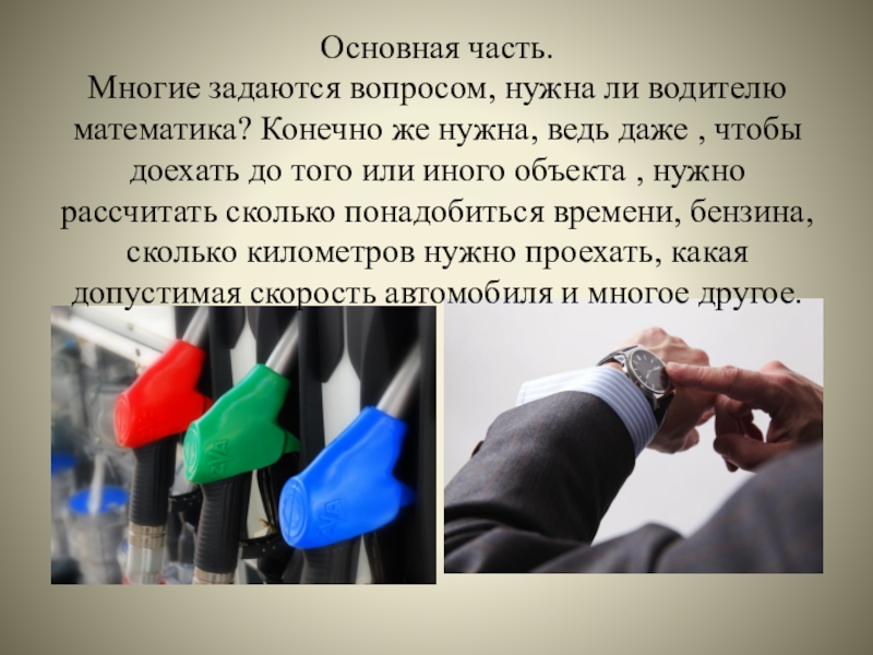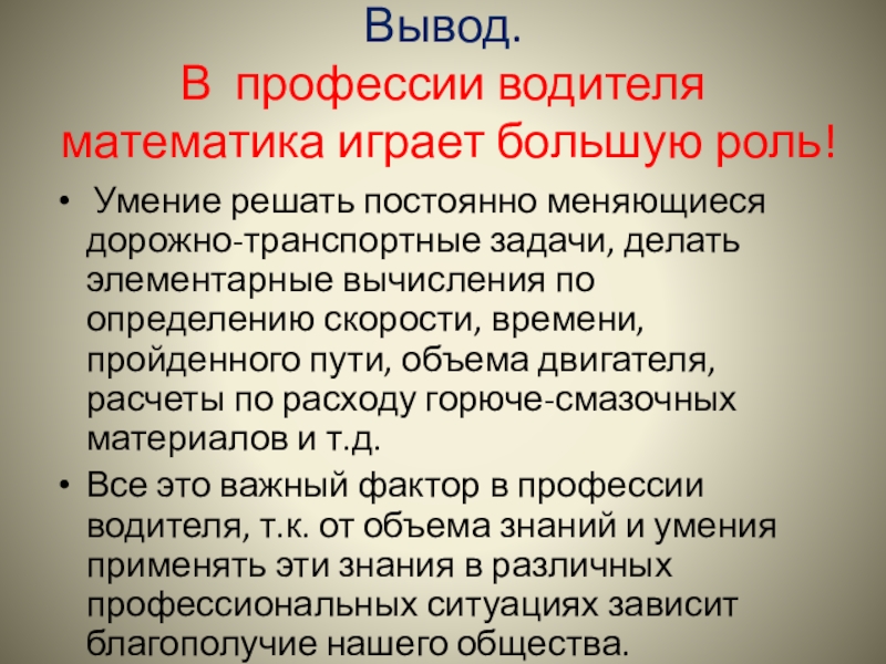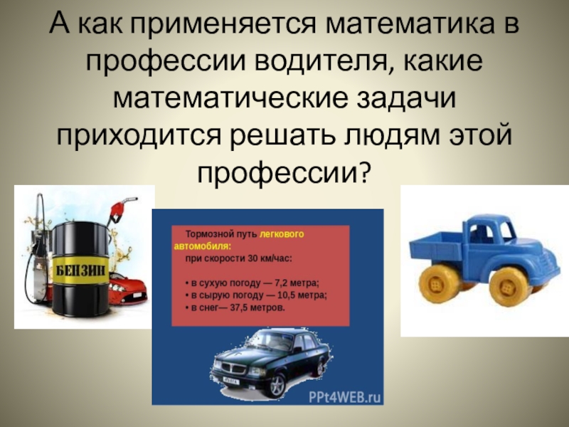 Слайд 22А как применяется математика в профессии водителя, какие математические задачи приходится