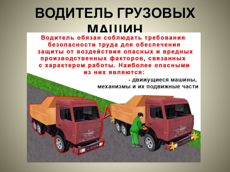 Слайд 20ВОДИТЕЛЬ ГРУЗОВЫХ МАШИН