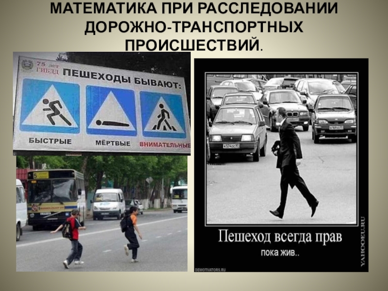 Слайд 43МАТЕМАТИКА ПРИ РАССЛЕДОВАНИИ ДОРОЖНО-ТРАНСПОРТНЫХ ПРОИСШЕСТВИЙ.