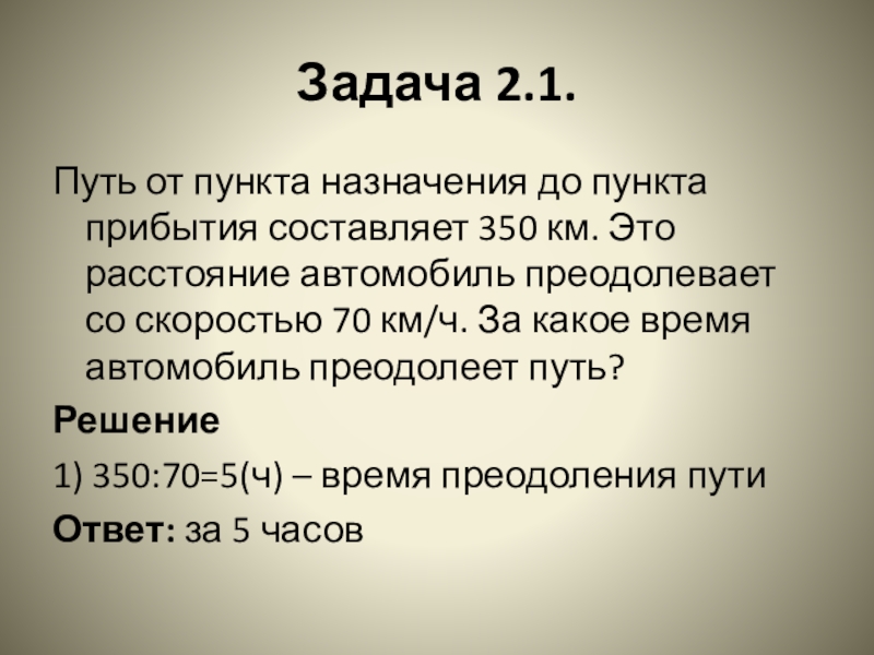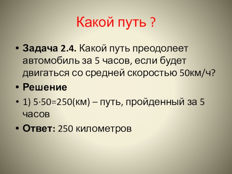 Задача 2.4. Какой путь преодолеет автомобиль за 5 часов,