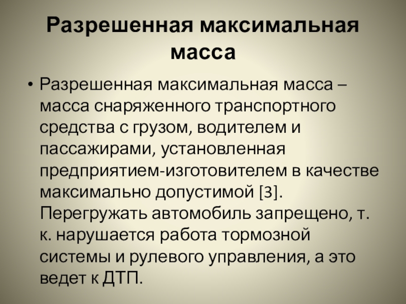 Разрешенная максимальная масса – масса снаряженного транспортного средства с