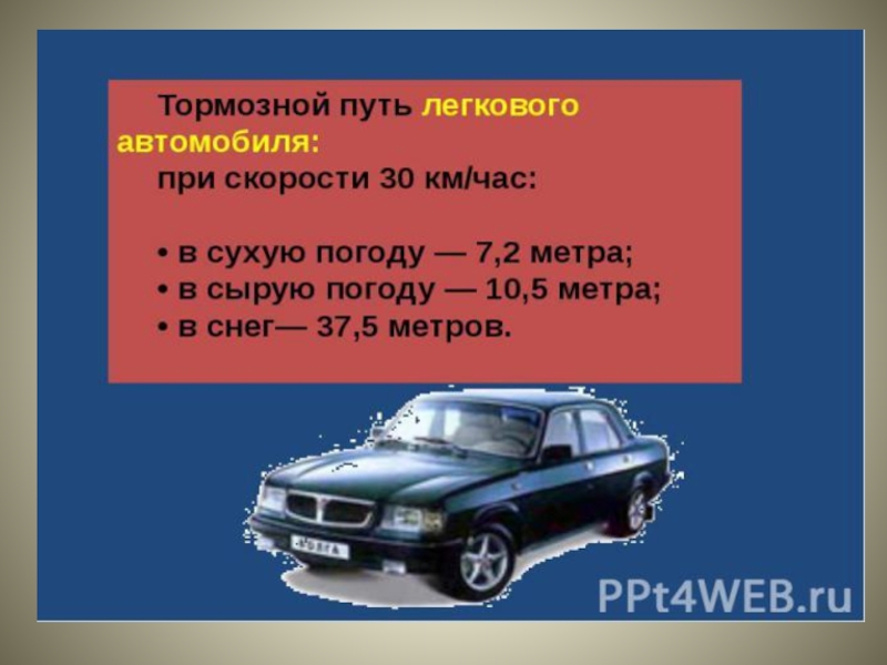 Выбирая скорость движения, водитель должен всегда помнить, что остановить