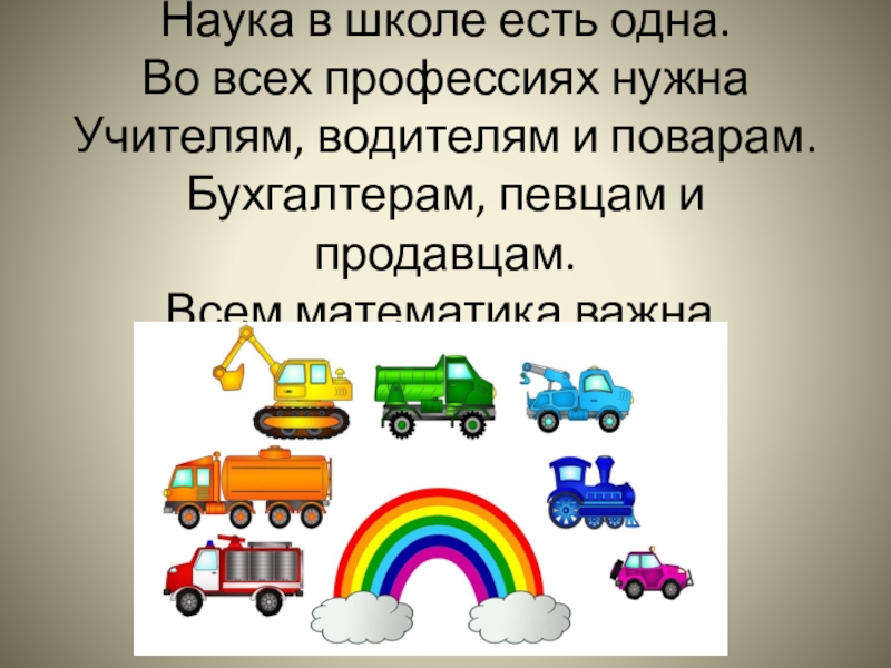 средствами. Различные виды транспорта они помогают нам жить. А профессия-водитель, водитель личного транспортного средства - это наши друзья, близкие нам люди, просто знакомый и незнакомый человек. В будущем мы сами.