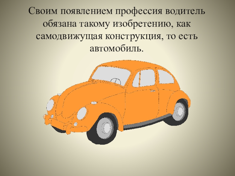 Слайд 12Своим появлением профессия водитель обязана такому изобретению, как самодвижущая конструкция, то