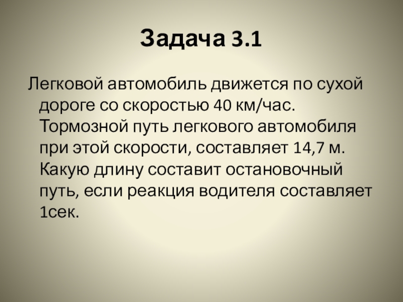 Легковой автомобиль движется по сухой дороге со скоростью 40