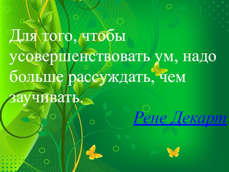 Слайд 2Для того, чтобы усовершенствовать ум, надо больше рассуждать, чем заучивать.