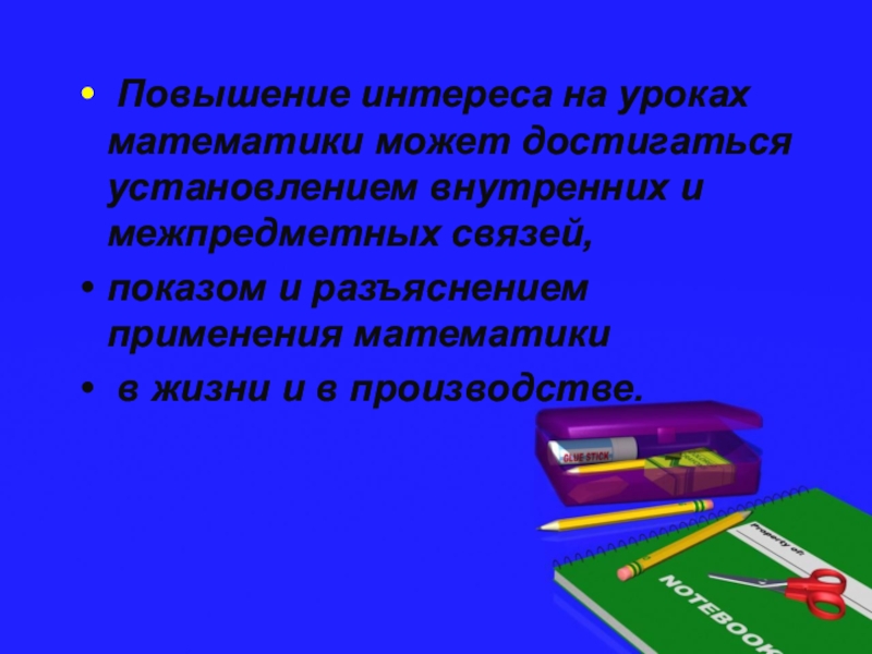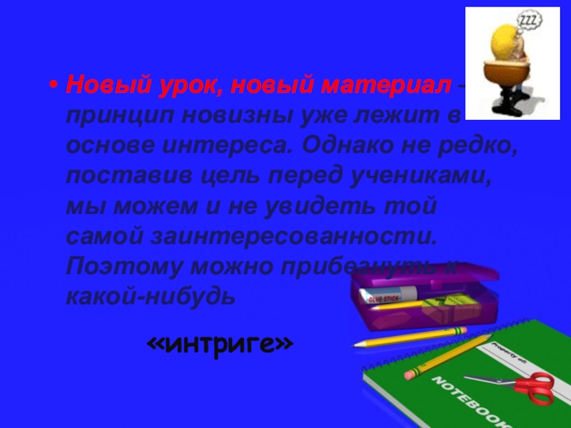 Увлекайте учеников содержанием материала, контролируйте темп урока, помогайте «слабым» поверить свои силы. Держите в поле зрения весь класс. Особенно следите за теми, у кого внимание неустойчиво. Предотвращайте сразу же попытки нарушить рабочий ритм. Обращайтесь чаще с вопросами к тем, кто может на уроке отвлечься.