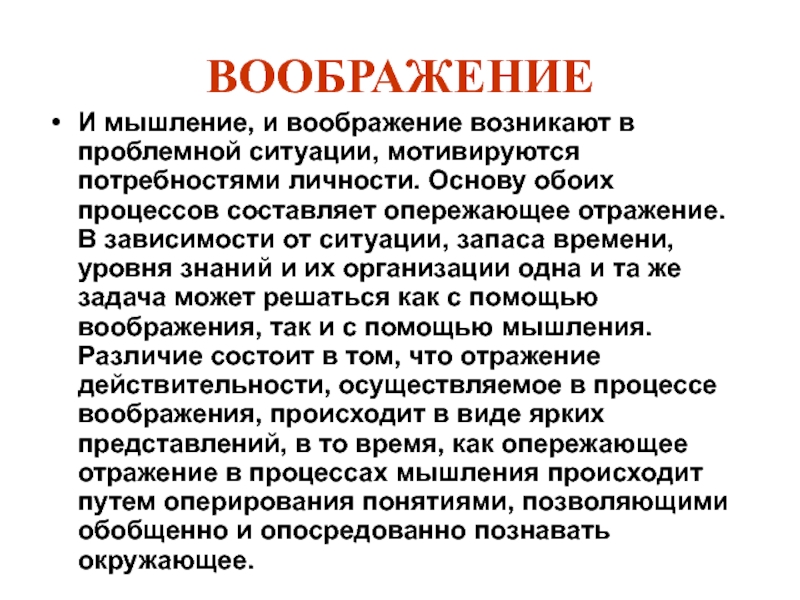 И мышление, и воображение возникают в проблемной ситуации, мотивируются потребностями личности.