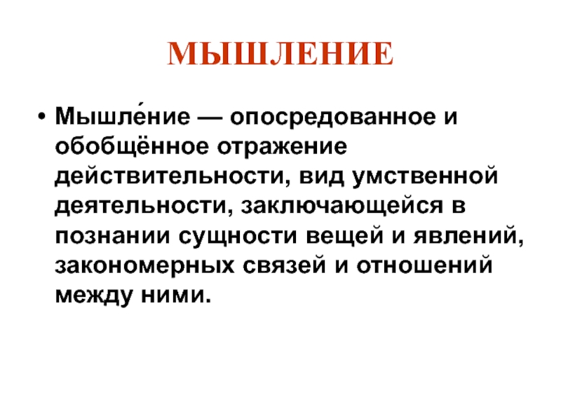 Мышление — психический процесс отражения и познания существенных связей и отношений