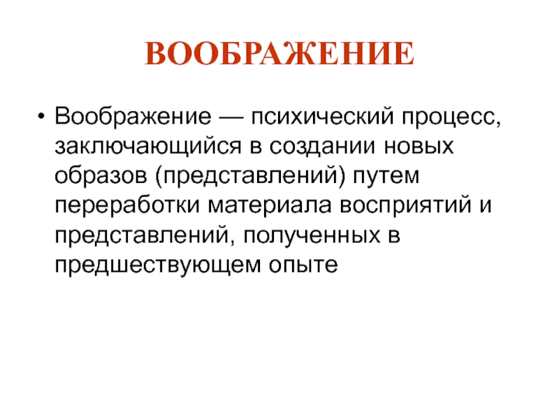 Воображение — психический процесс, заключающийся в создании новых образов (представлений) путем