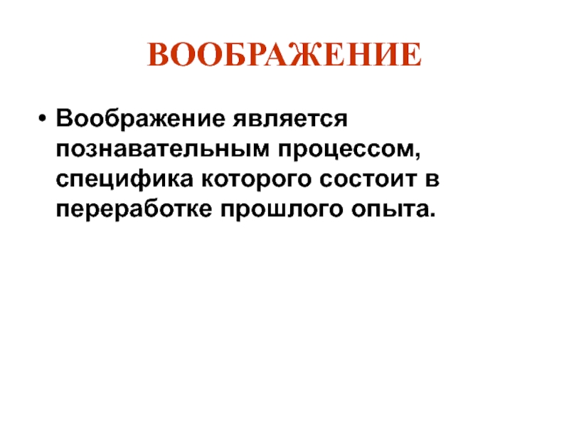 Воображение является познавательным процессом, специфика которого состоит в переработке прошлого опыта.