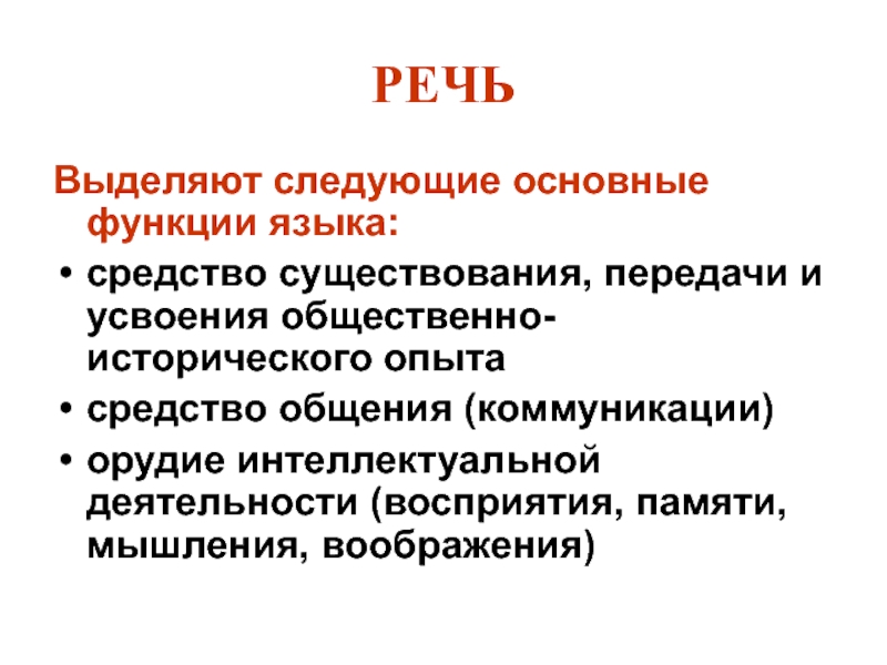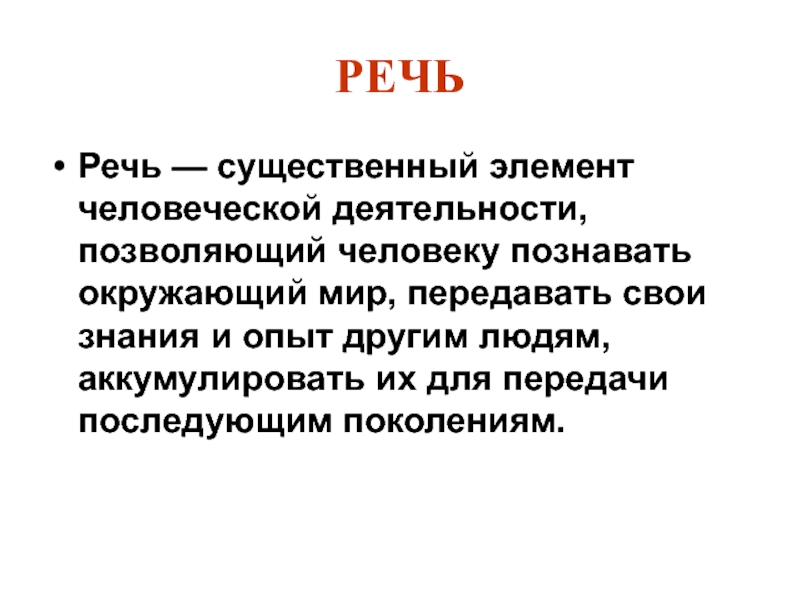Речь — существенный элемент человеческой деятельности, позволяющий человеку познавать окружающий мир,