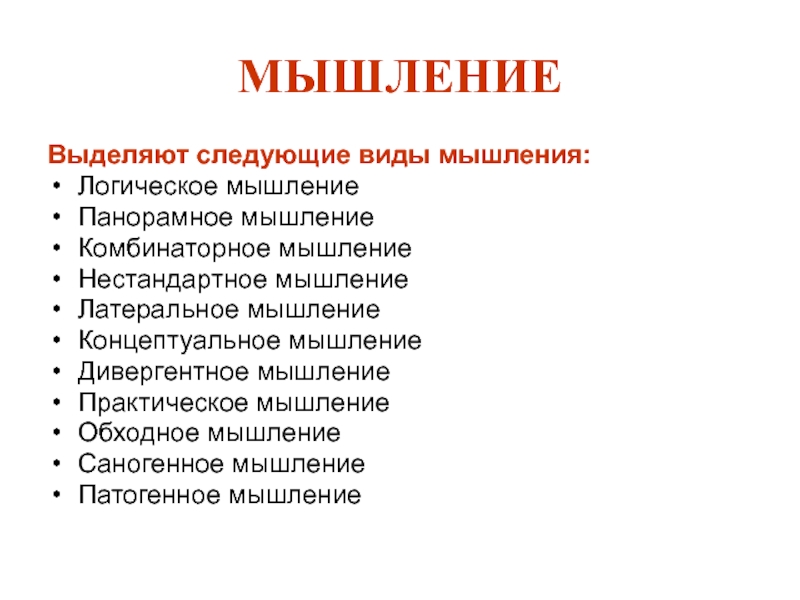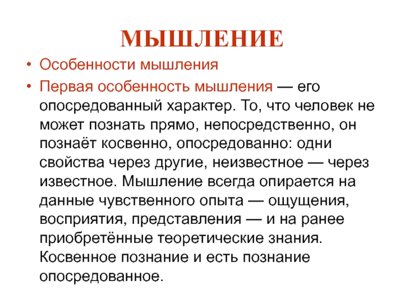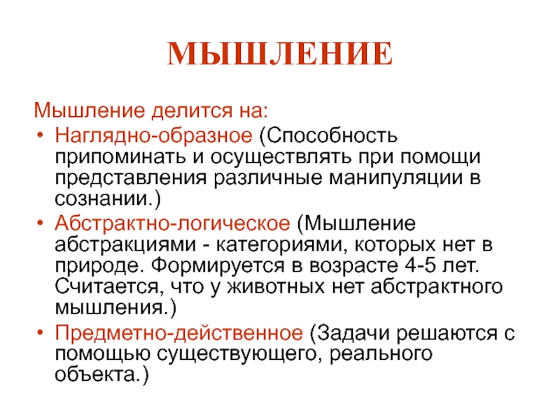 к мышлению именно относят активную сторону познания: внимание, восприятие, процесс ассоциаций, образование понятий и суждений. В более тесном логическом смысле мышление заключает в себе лишь образование суждений и умозаключений путем анализа и синтеза понятий.