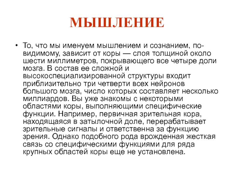 Мышление связано с функционированием мозга, однако сама способность мозга к оперированию