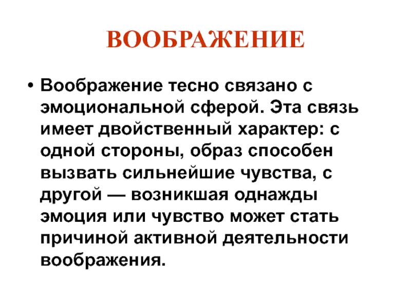 Воображение тесно связано с эмоциональной сферой. Эта связь имеет двойственный характер: