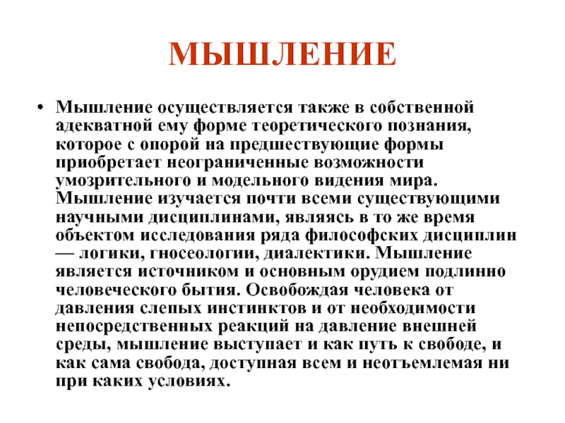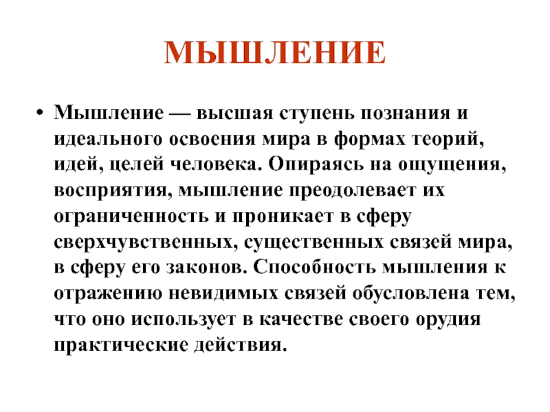 Мышление — высшая ступень познания и идеального освоения мира в формах