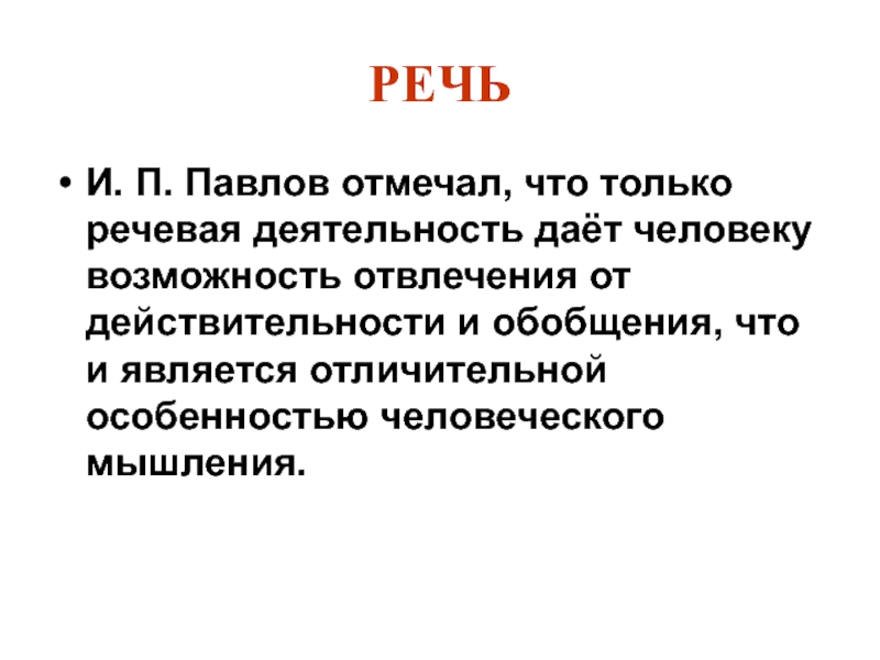И. П. Павлов отмечал, что только речевая деятельность даёт человеку возможность