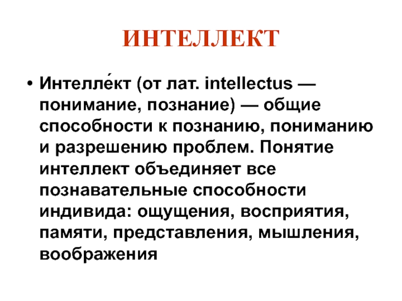 Интелле́кт (от лат. intellectus — понимание, познание) — общие способности к