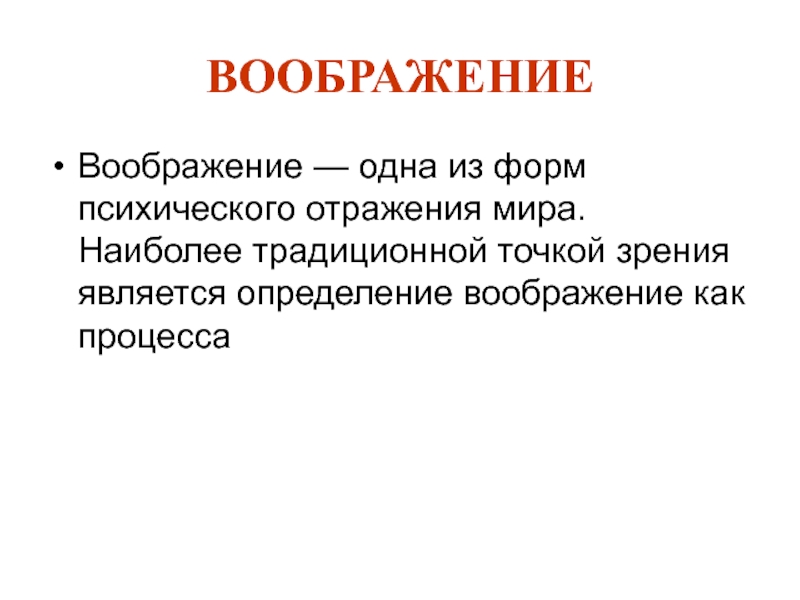 Воображение — одна из форм психического отражения мира. Наиболее традиционной точкой
