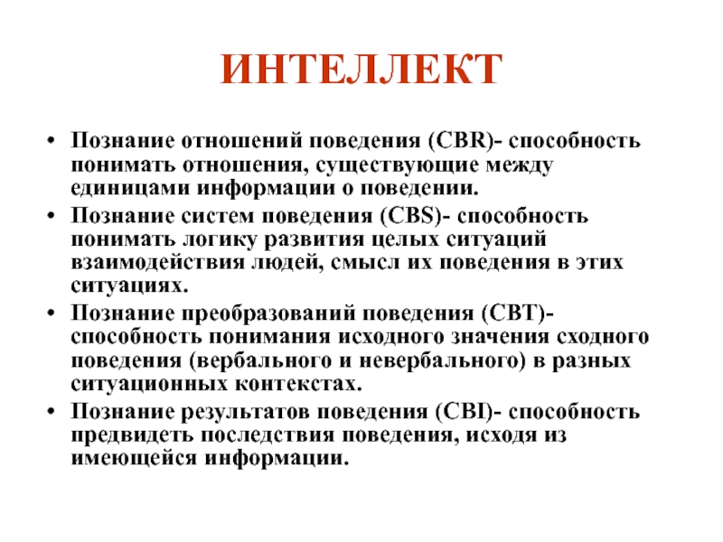 Познание отношений поведения (CBR)- способность понимать отношения, существующие между единицами информации
