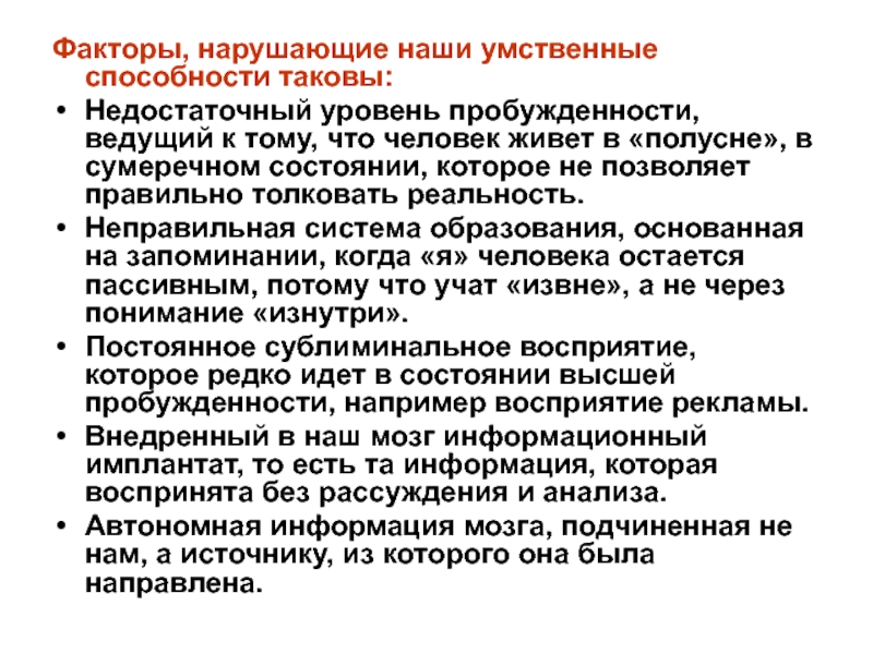 Слайд 63Факторы, нарушающие наши умственные способности таковы: