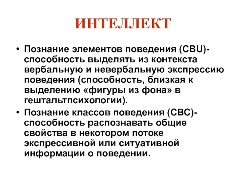 Познание элементов поведения (CBU)- способность выделять из контекста вербальную и невербальную