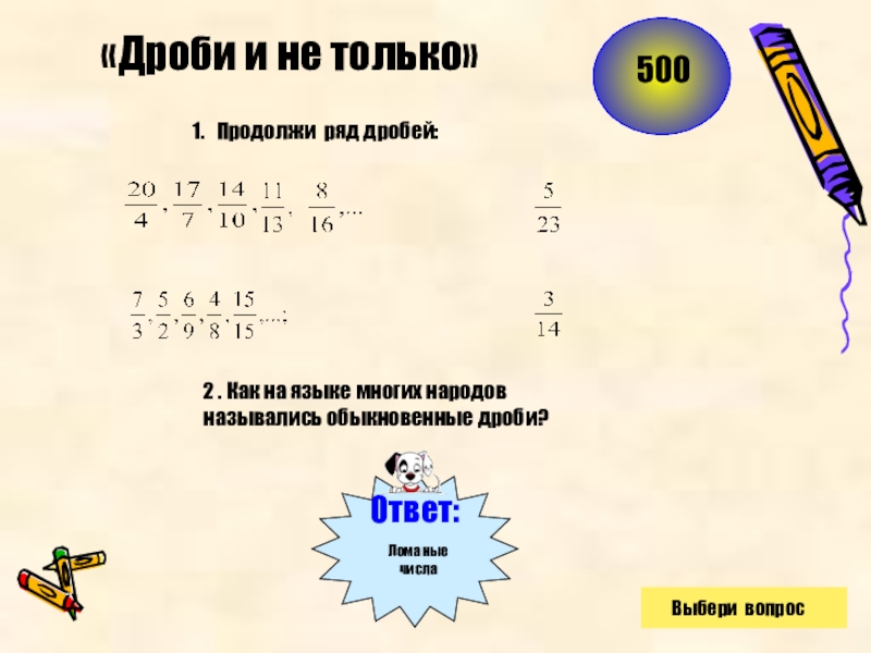 За ней последовали дроби -