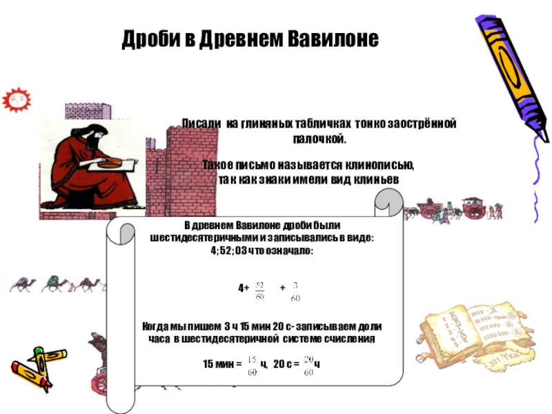 В древнем Вавилоне дроби были шестидесятеричными и записывались в виде: