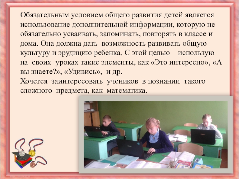 обязательно усваивать, запоминать, повторять в классе и дома. Она должна дать возможность развивать общую культуру и эрудицию ребенка. С этой целью использую на своих уроках такие элементы, как «Это интересно», «А вы знаете?», «Удивись», и др.
