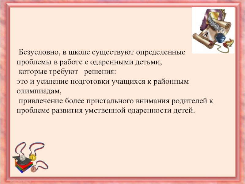 Безусловно, в школе существуют определенные проблемы в работе с одаренными