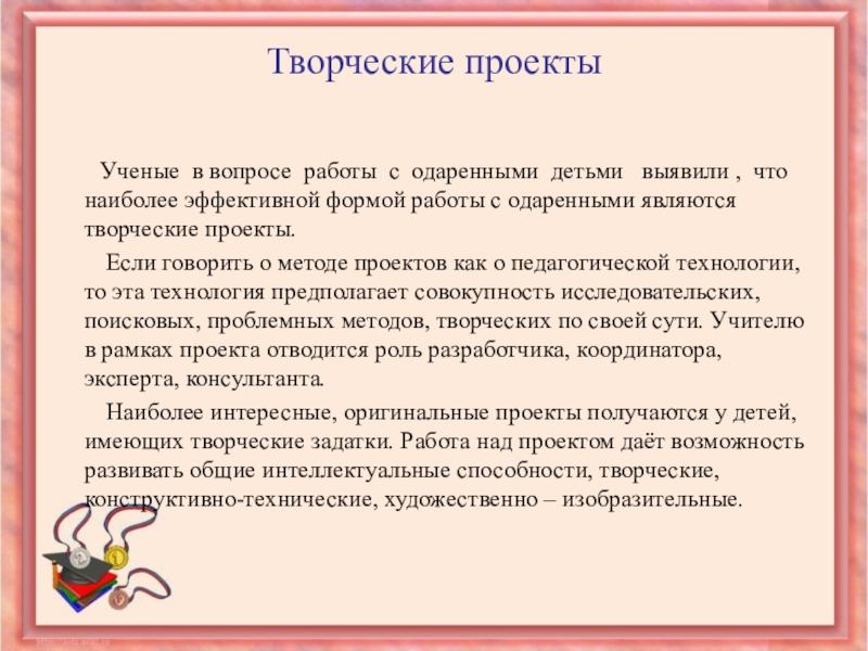 детьми выявили , что наиболее эффективной формой работы с одаренными являются творческие проекты.