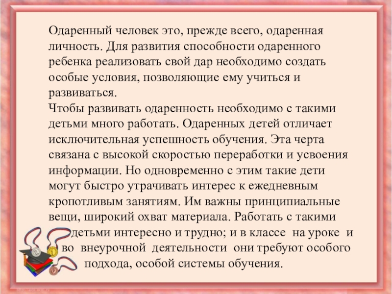 Слайд 4Одаренный человек это, прежде всего, одаренная личность. Для развития способности одаренного