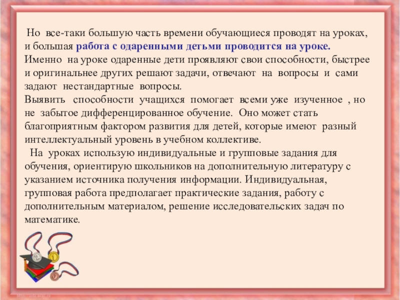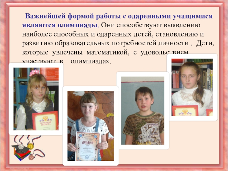 Слайд 9 Важнейшей формой работы с одаренными учащимися являются
