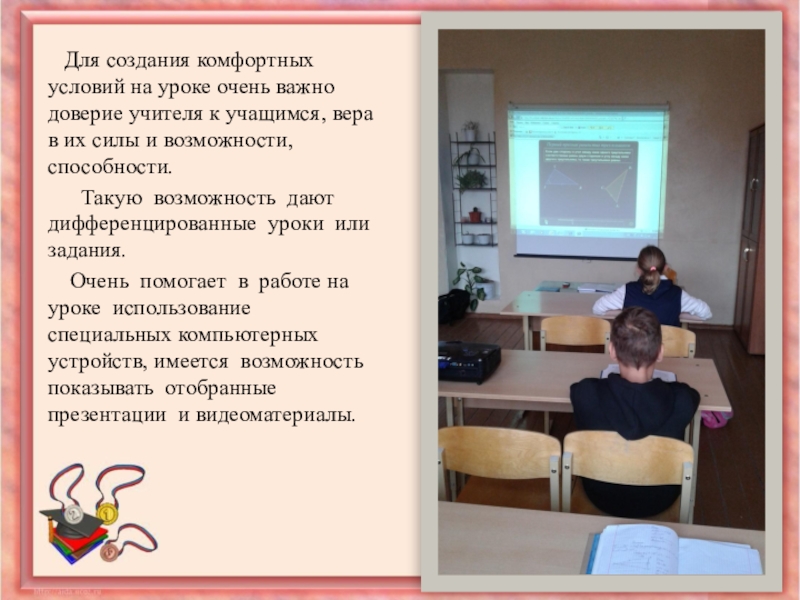 Слайд 19 Для создания комфортных условий на уроке очень важно доверие