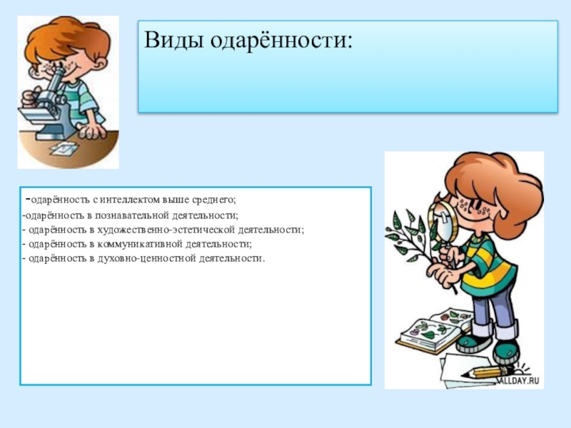 Слайд 4Виды одарённости:
