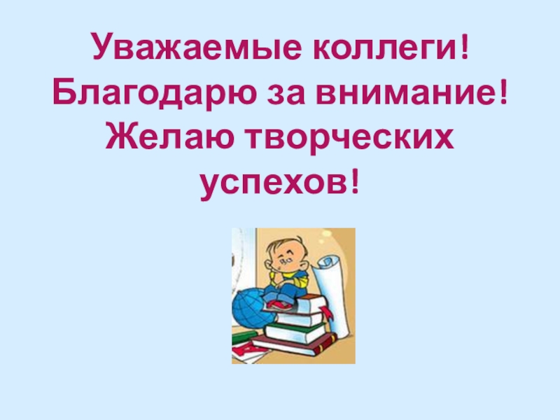 Уважаемые коллеги!  Благодарю за внимание! Желаю творческих успехов!