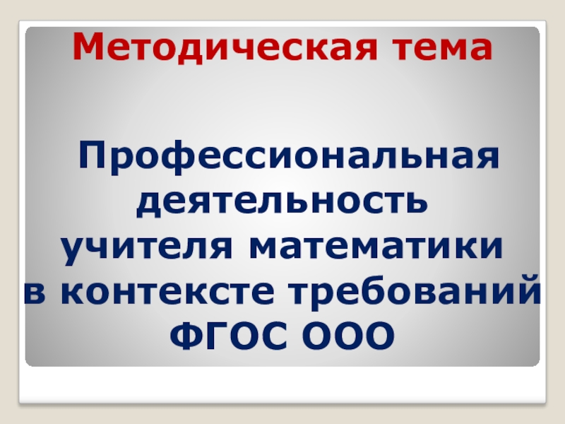 Методическая тема    Профессиональная деятельность  учителя математики  в контексте требований ФГОС ООО